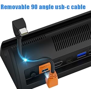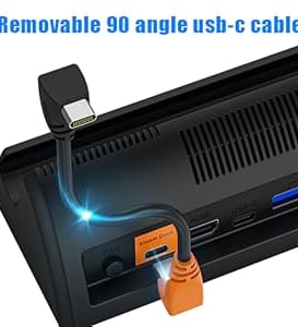 La estación de acoplamiento Steam tiene un cable USB-C extraíble en ángulo recto, más conveniente que el oficial.