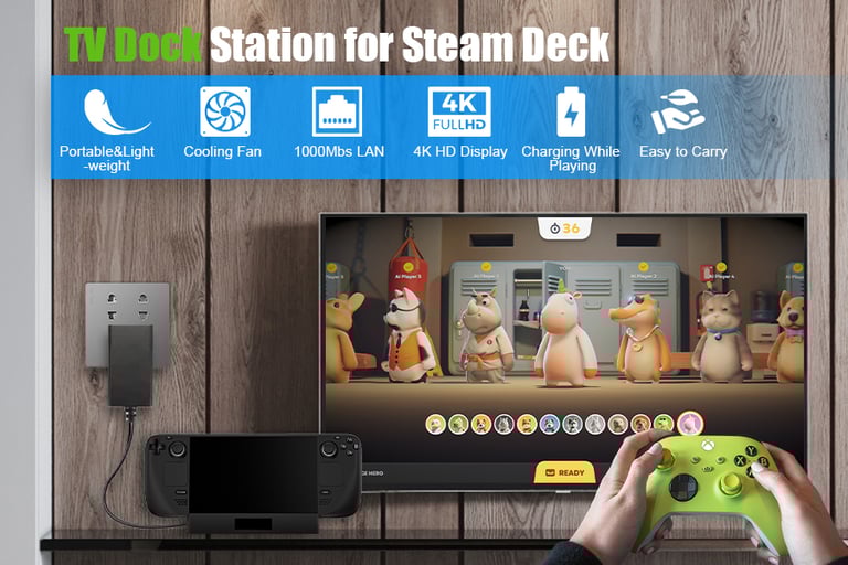 La estación de acoplamiento de Steam Deck admite una entrada LAN de 1000 M para un entorno operativo de juego más rápido y estable sin demoras operativas, lo que garantiza una imagen de alta definición y una alta integridad de la señal.